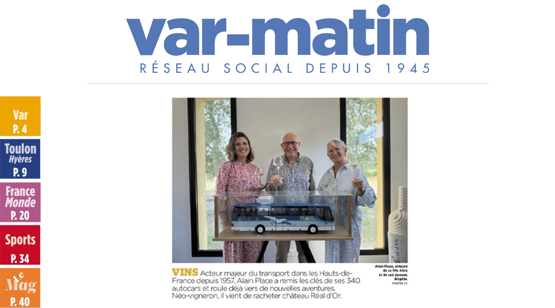 Nous avons le plaisir de vous partager un bel article paru dans Var-Matin ce vendredi 18 juillet 2025, consacré à Alain Place, nouveau propriétaire du Château Réal d’Or.